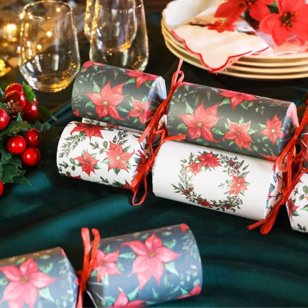 Red Poinsettia FSC Luxury Christmas Crackers Box of 6