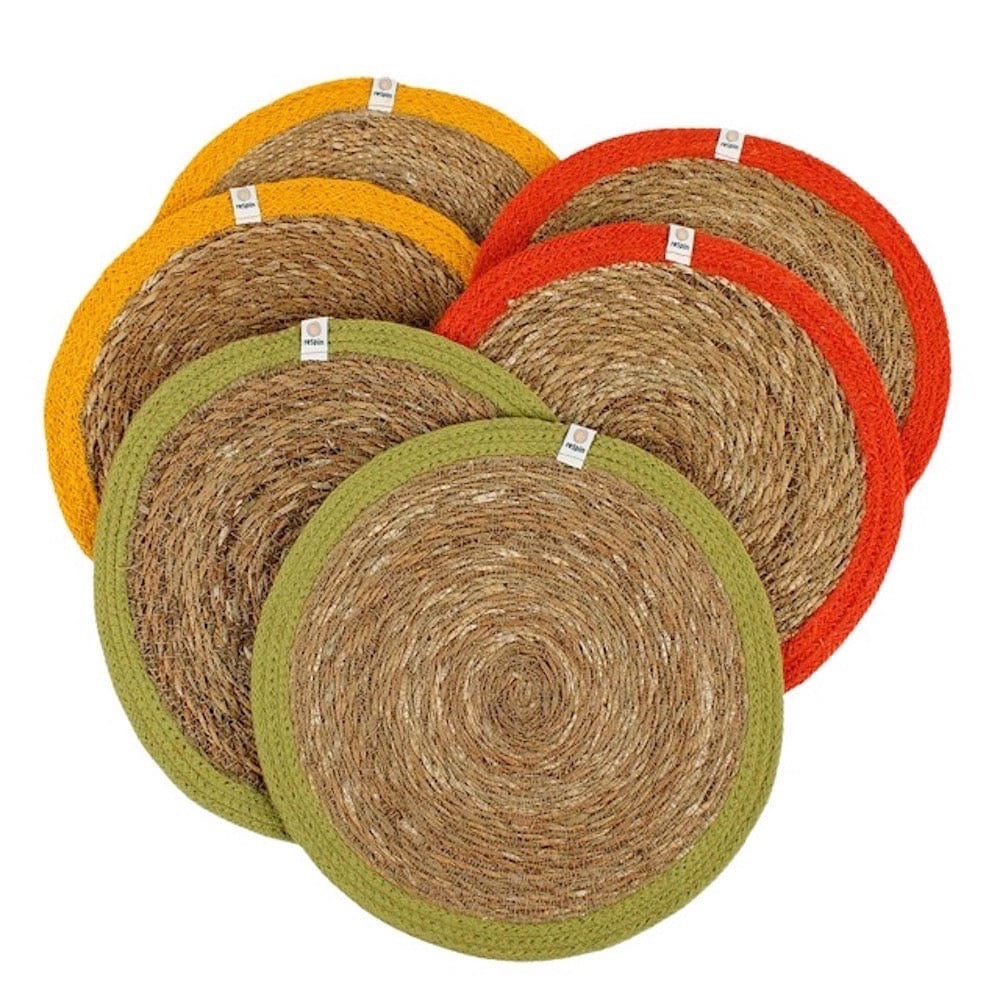 Respiin Set of 6 Seagrass & Jute Tablemats - Brights