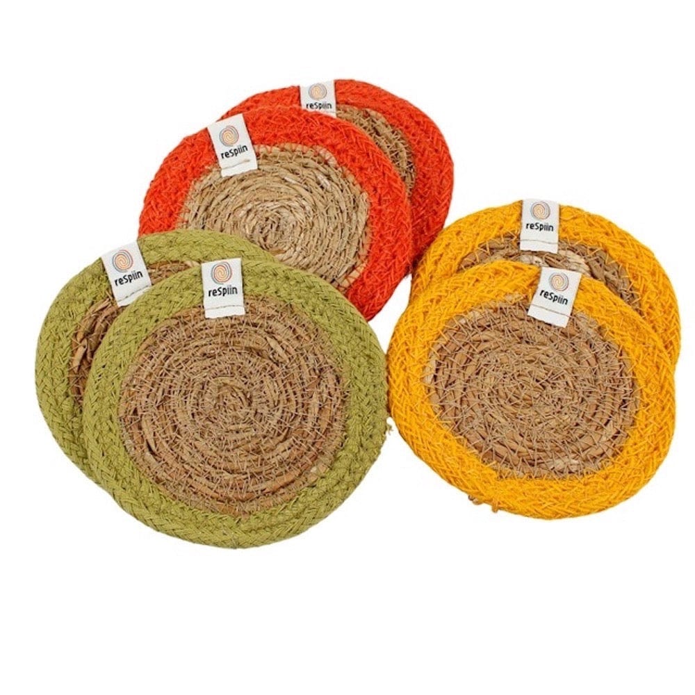 Respiin Set of 6 Seagrass & Jute Coasters - Brights