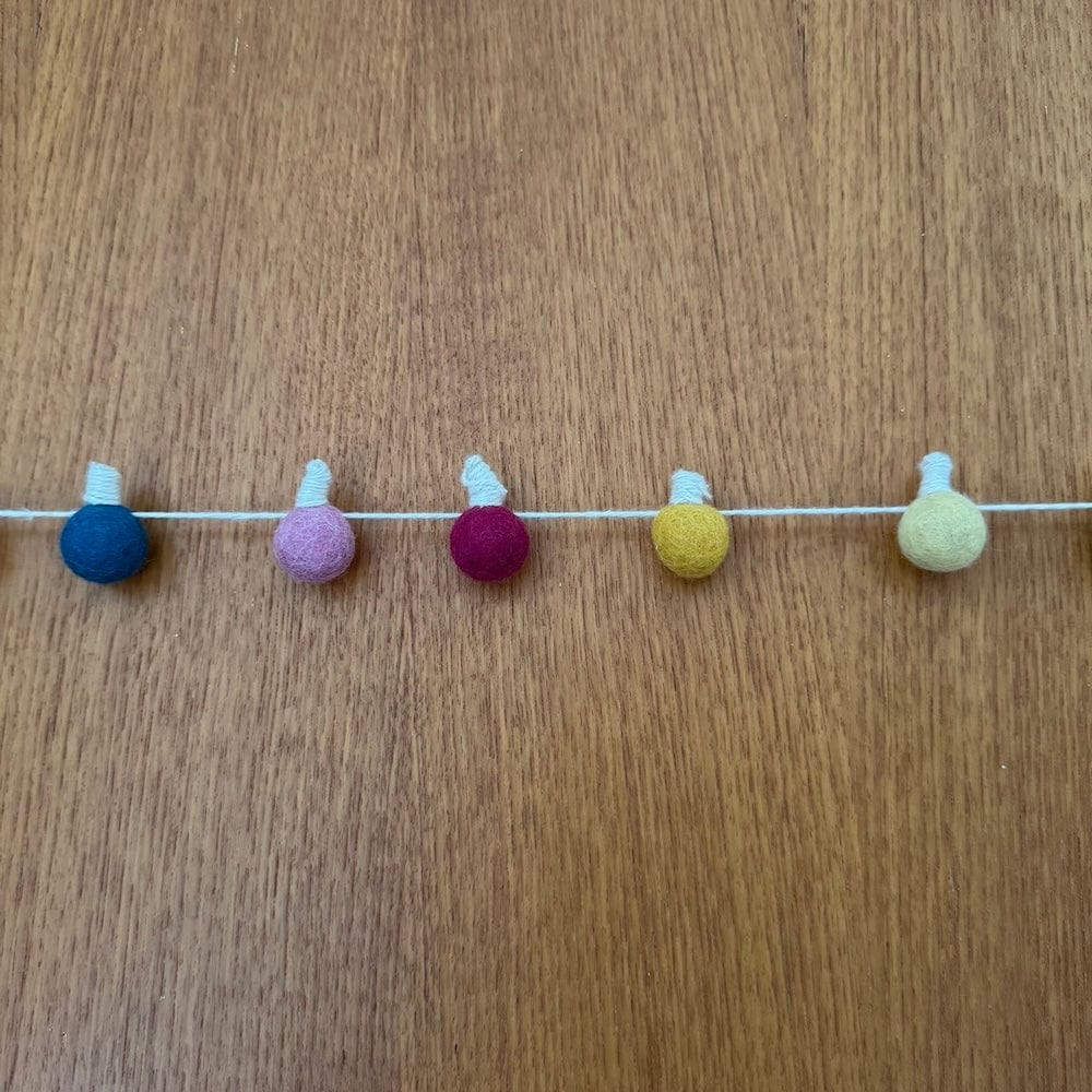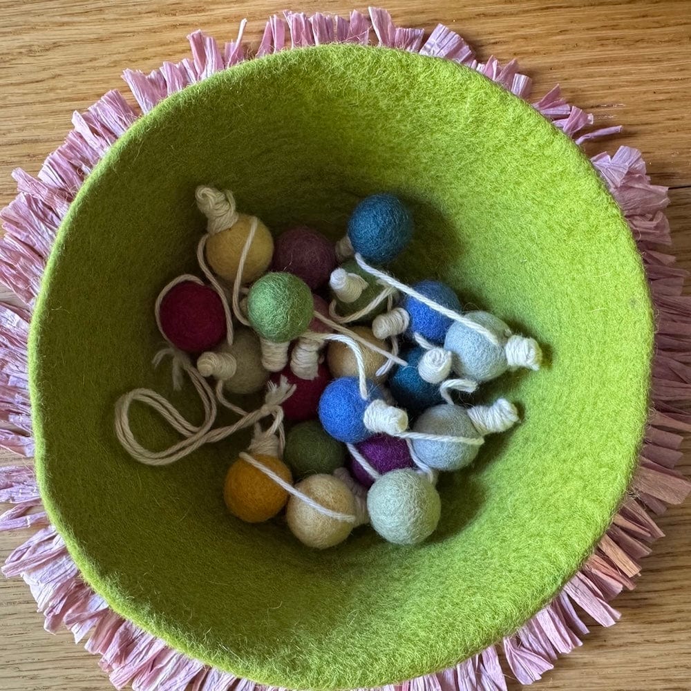 This colourful 'fairy light bulb' garland is hand made with 100% fairtrade wool felt in a rainbow of colours. Something to beautiful treasure for years to come and a fun, eco-friendly way to decorate any space. Endlessly reusable and a joy to hang up in your bedroom, nursery, living room, garden and more.