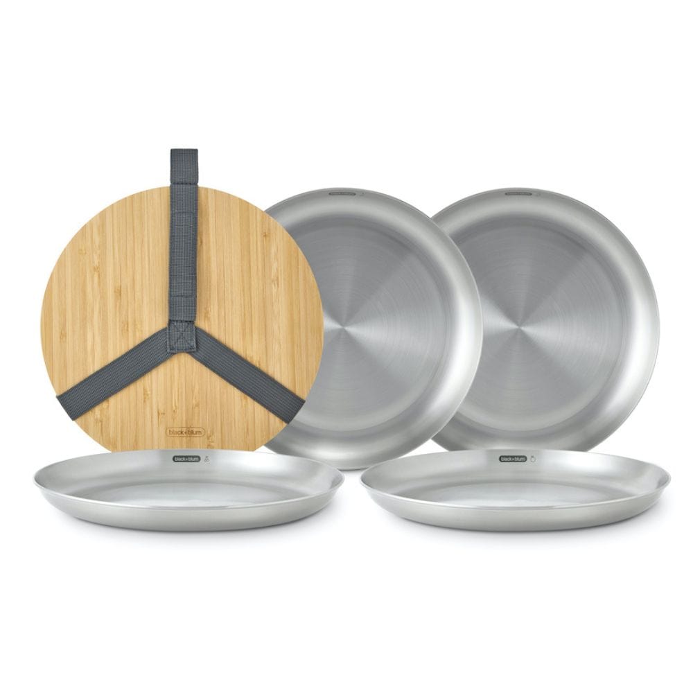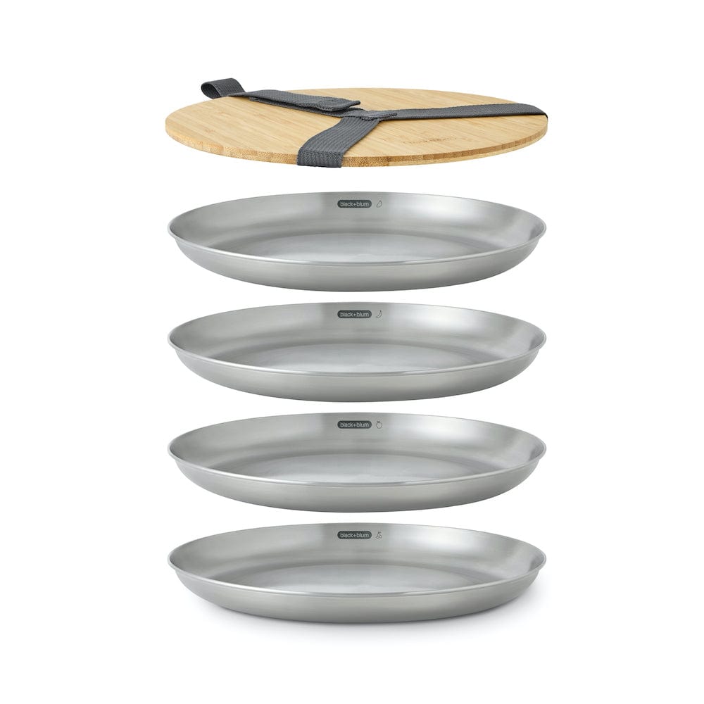 black+blum Stainless Steel Plate Set with Bamboo Board