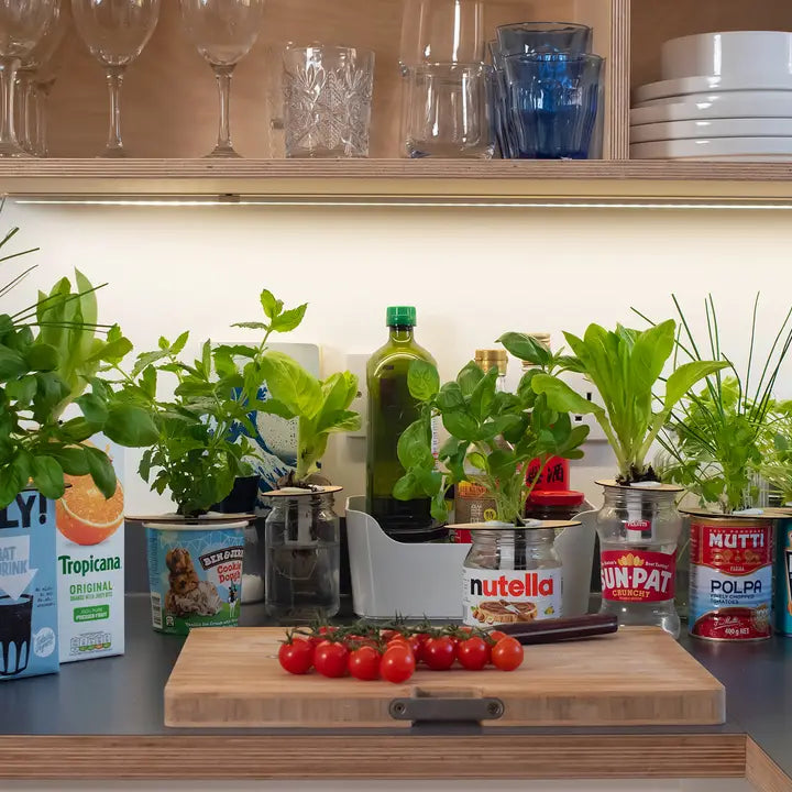 The Bottle Farm Mini is a modular kit that transforms everyday containers like jars, cans, and cartons into thriving herb gardens. This compact kit prioritises sustainability and eliminates the need for plant pots, offering an eco-friendly way to grow fresh herbs, salads, and vegetables at home. Perfect for those with limited space, the Mini is ideal for any kitchen windowsill or sunny spot.