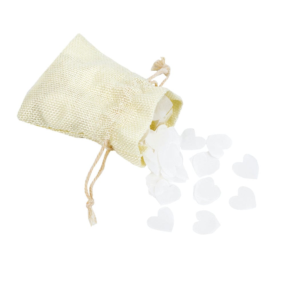 The confetti hearts come in a sweet hessian jute bag and are biodegradable - which is not only better for the planet, but often the only kind venues will allow.