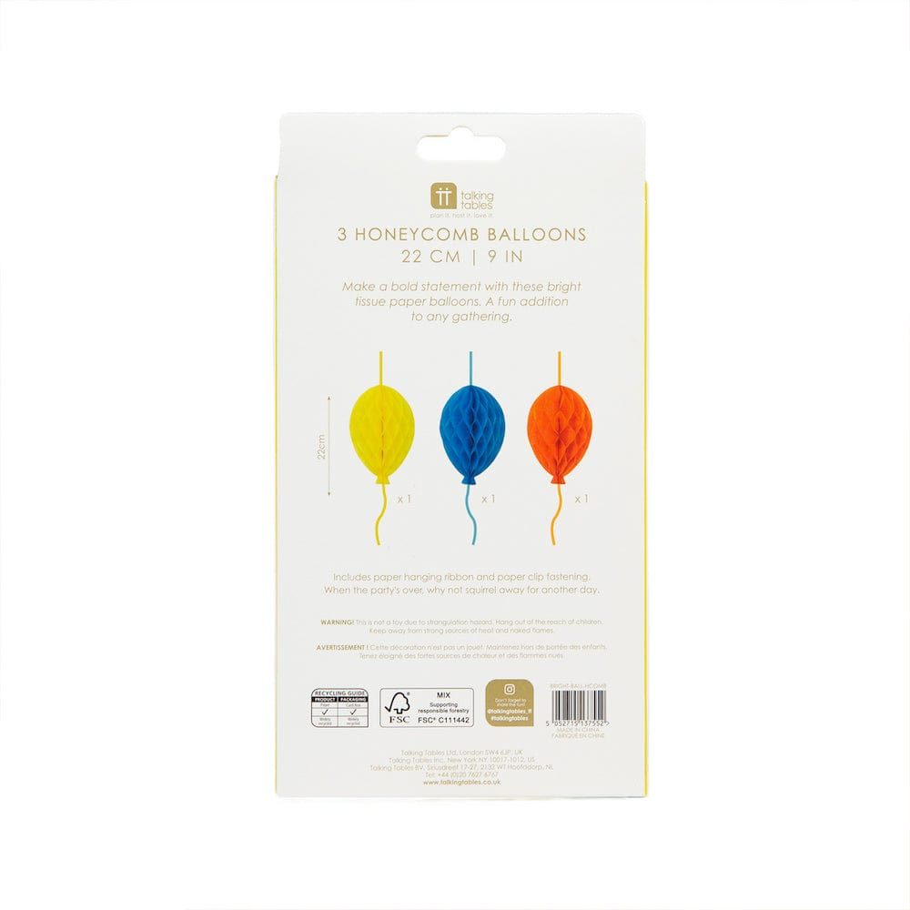 Bright Birthday Balloons Paper Honeycomb Decorations - 3 Pack