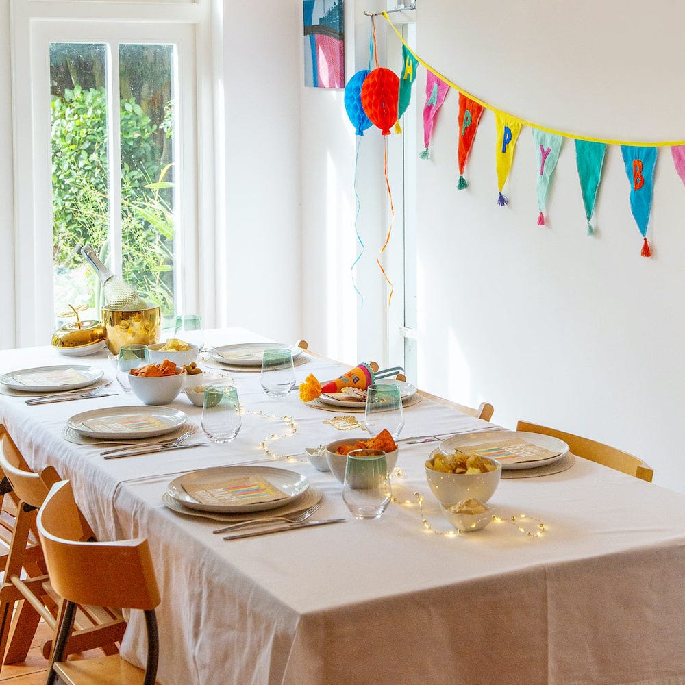No matter the occasion, these paper balloons make a stunning addition and a bold statement. Whether you’re decking out the office for a coworker's birthday or hosting a summer party, these charmingly versatile decorations add depth and texture to any decor. They look fabulous hanging over a party buffet or as the background to some birthday photos. Pair wonderfully with the Rainbow Happy Birthday Fabric Bunting!