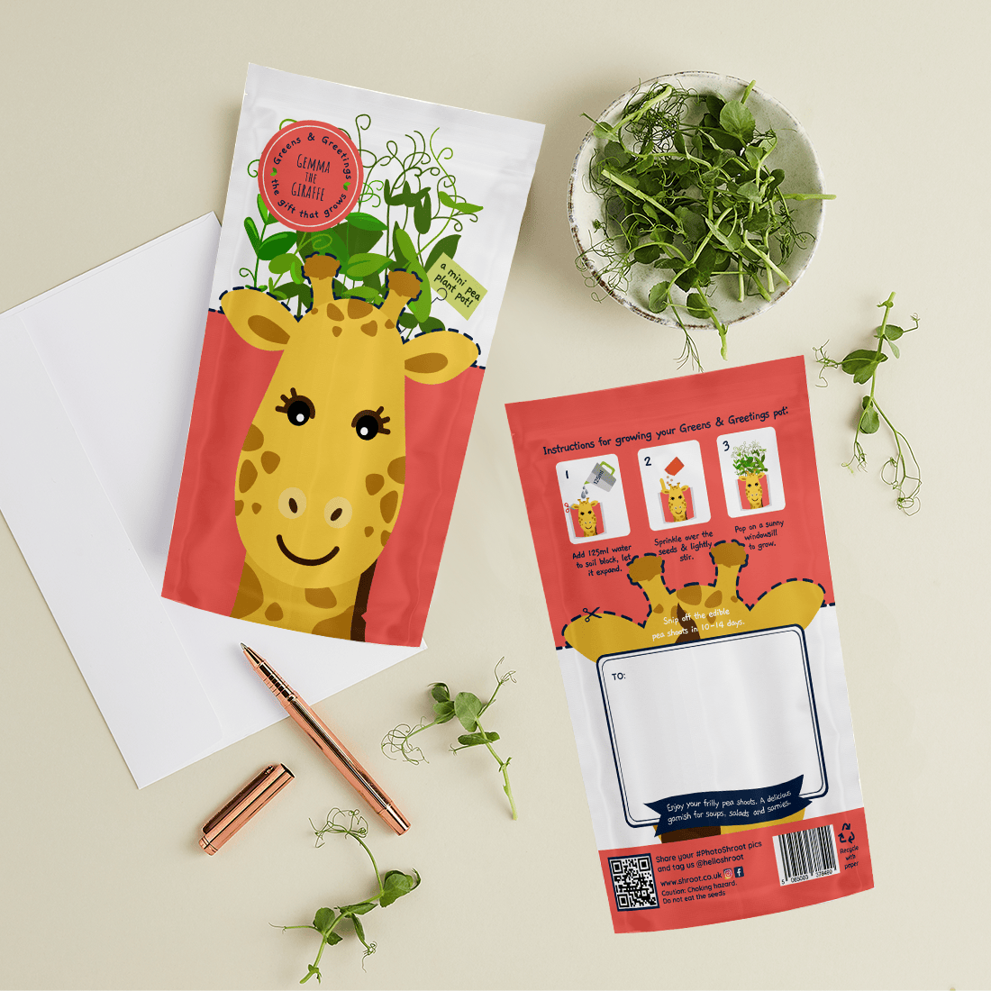 'Gemma' Giraffe Growable Microgreen Greetings Card