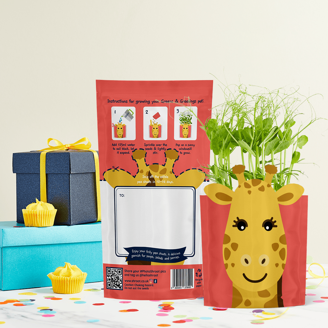 The Gemma the Giraffe Greens & Greeting is a sustainable seed gift loved by both children and adults who dream of the savannah. Ideal for birthdays, eco-friendly party favors, or simply to brighten someone’s day.