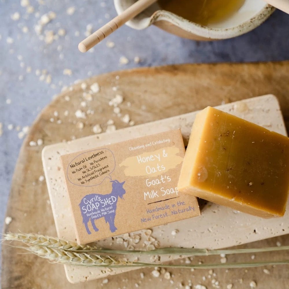 This wonderful Honey, Oats and Goats Milk Soap, handmade by Cyril’s Soap Shed is made with local New Forest Honey and ground oats.