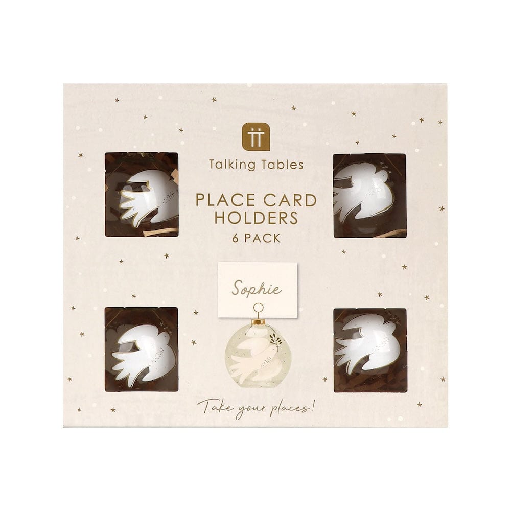 Dove & Mistletoe Glass Bauble Place Card Holders - 6 Pack