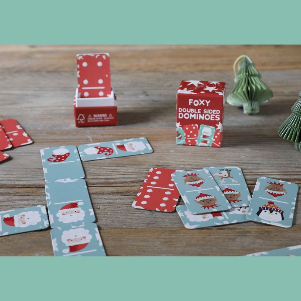 Contained in a solid box, the festive fun dominoes are printed double sided so there are two ways to play. One side has jolly festive characters and the other red & white spots.