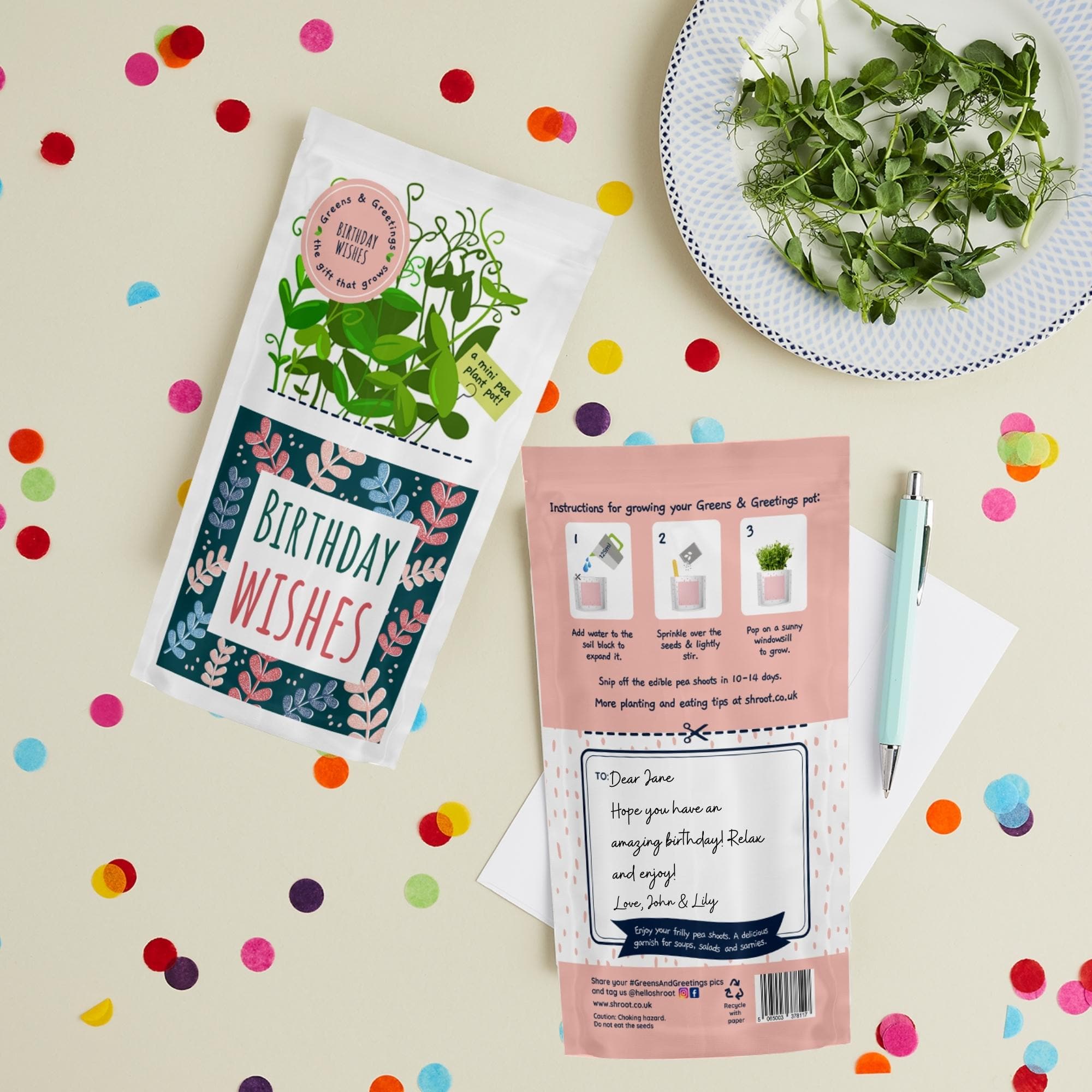 The ‘Birthday Wishes’ Greens & Greeting is an eco-friendly letterbox gift, ideal for gardeners, foodies, health enthusiasts or eco-conscious friends.