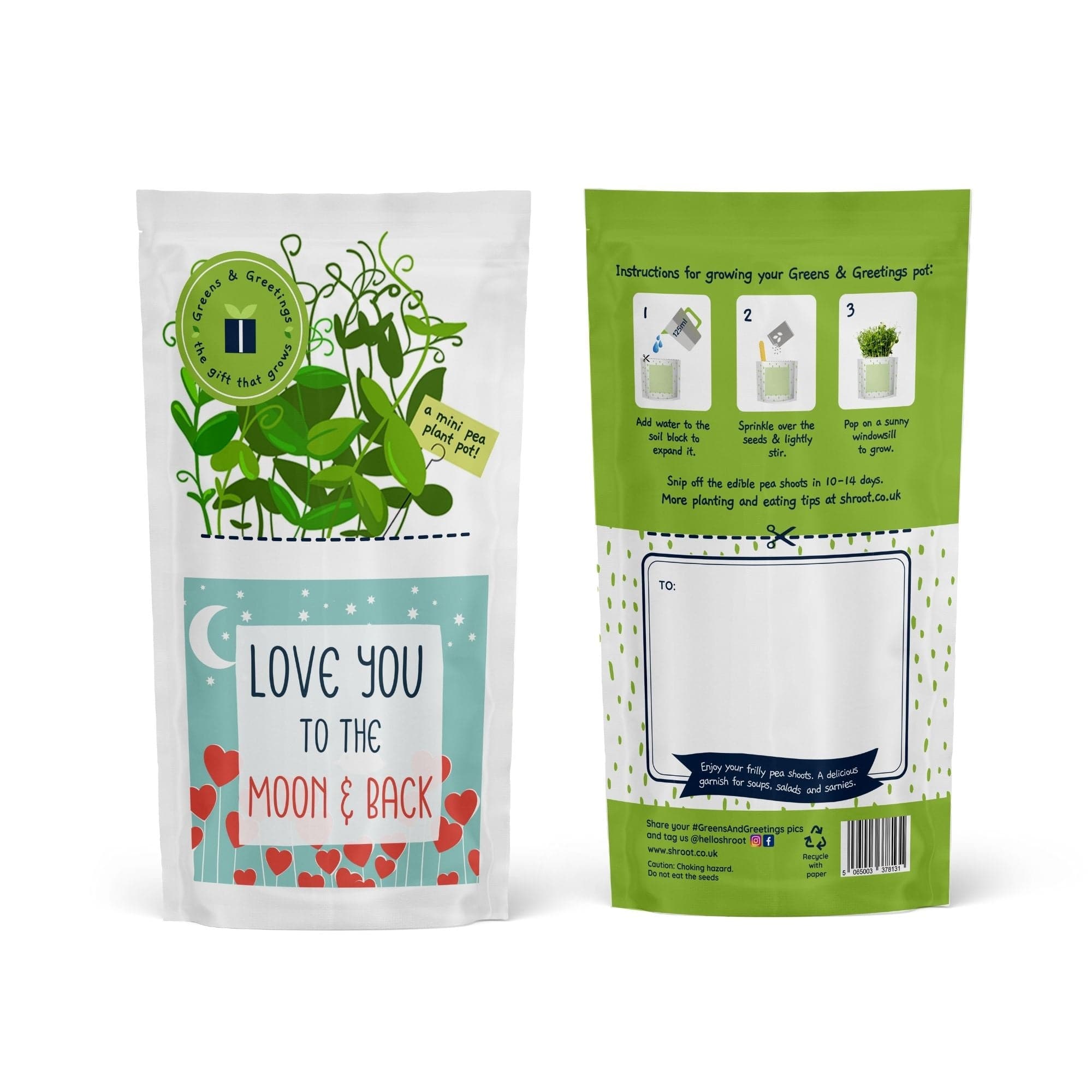 The ‘Love You to the Moon & Back’ Greens & Greeting is an eco-friendly letterbox gift. It's a unique way to say 'I love you' and is ideal for gardeners, foodies, health enthusiasts or eco-conscious loved ones.