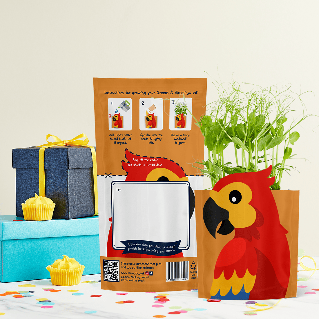 The Polly the Parrot Greens & Greeting is a sustainable seed gift that will appeal to bird lovers of all ages. Ideal for birthdays, as a fun party bag item, or just because.