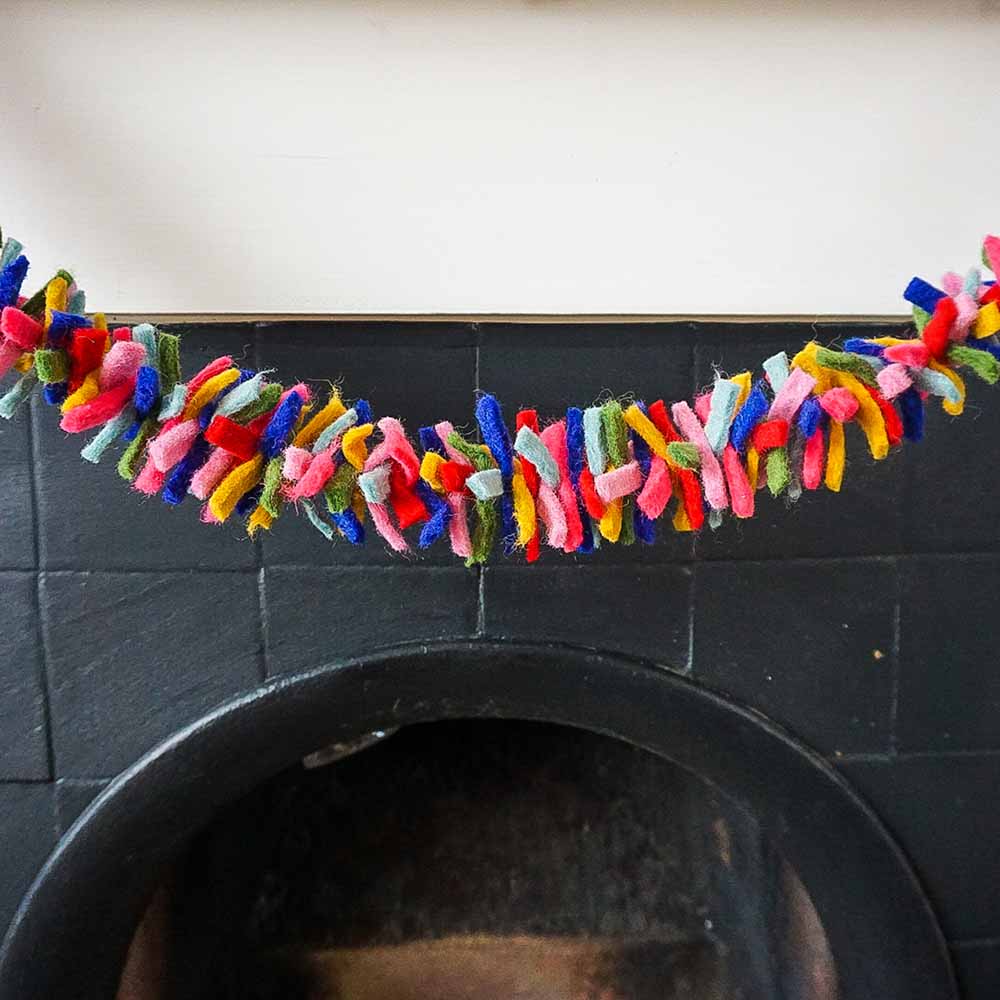 This fabulous garland is hand made using strips of 100% fairtrade wool felt in a rainbow of colours. Something beautiful to treasure for years to come.
