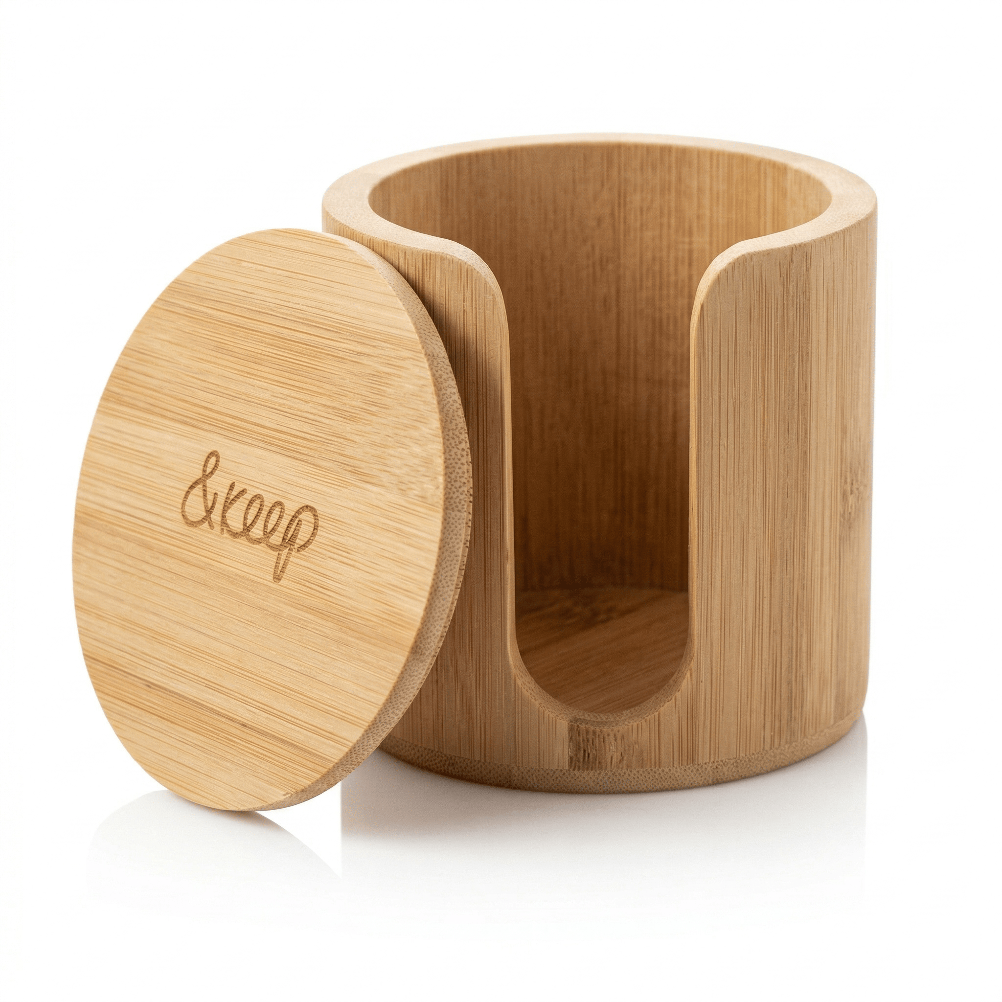 This stylish, 100% bamboo pot is the perfect storage solution for your reusable make up pads. The removable lid is beautifully engraved with &Keep and there is a curved window so that you can see how many pads you have left. A minimalist chic accessory for your dressing table or bathroom.