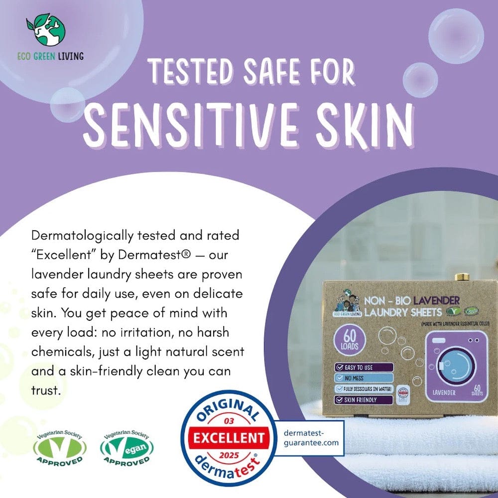 Not only are these non-bio laundry detergent sheets incredibly convenient, they are completely non-toxic, biodegradable, hypoallergenic, vegan friendly and paraben-free. They are gentle enough for even the most sensitive skin.