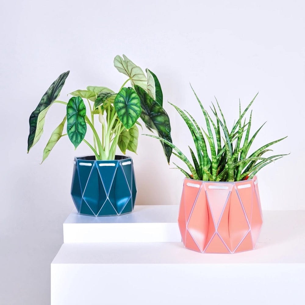 Origami is an integral part of the design process. It creates beautiful, functional forms using the least amount of material possible. After popping into shape the wicking cord enables your plant to self-regulate its own water intake - no more unhappy plants!