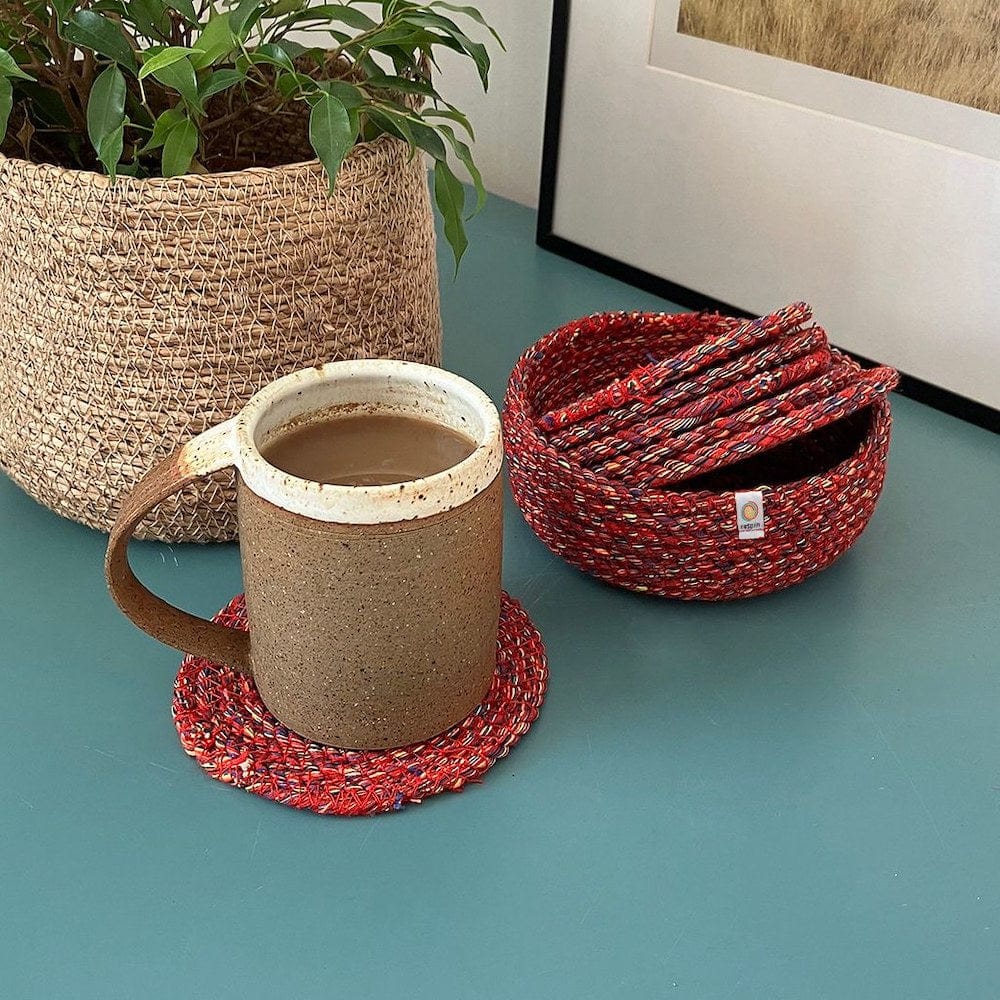 Respiin Recycled Cotton Coasters - Set of 6 & Holder