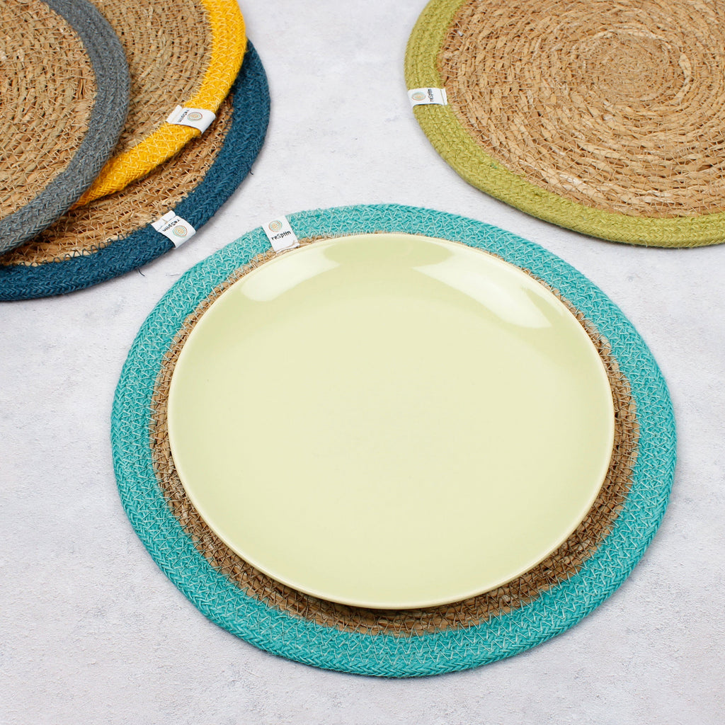 Respiin Set of 6 Seagrass & Jute Tablemats - Rainbow