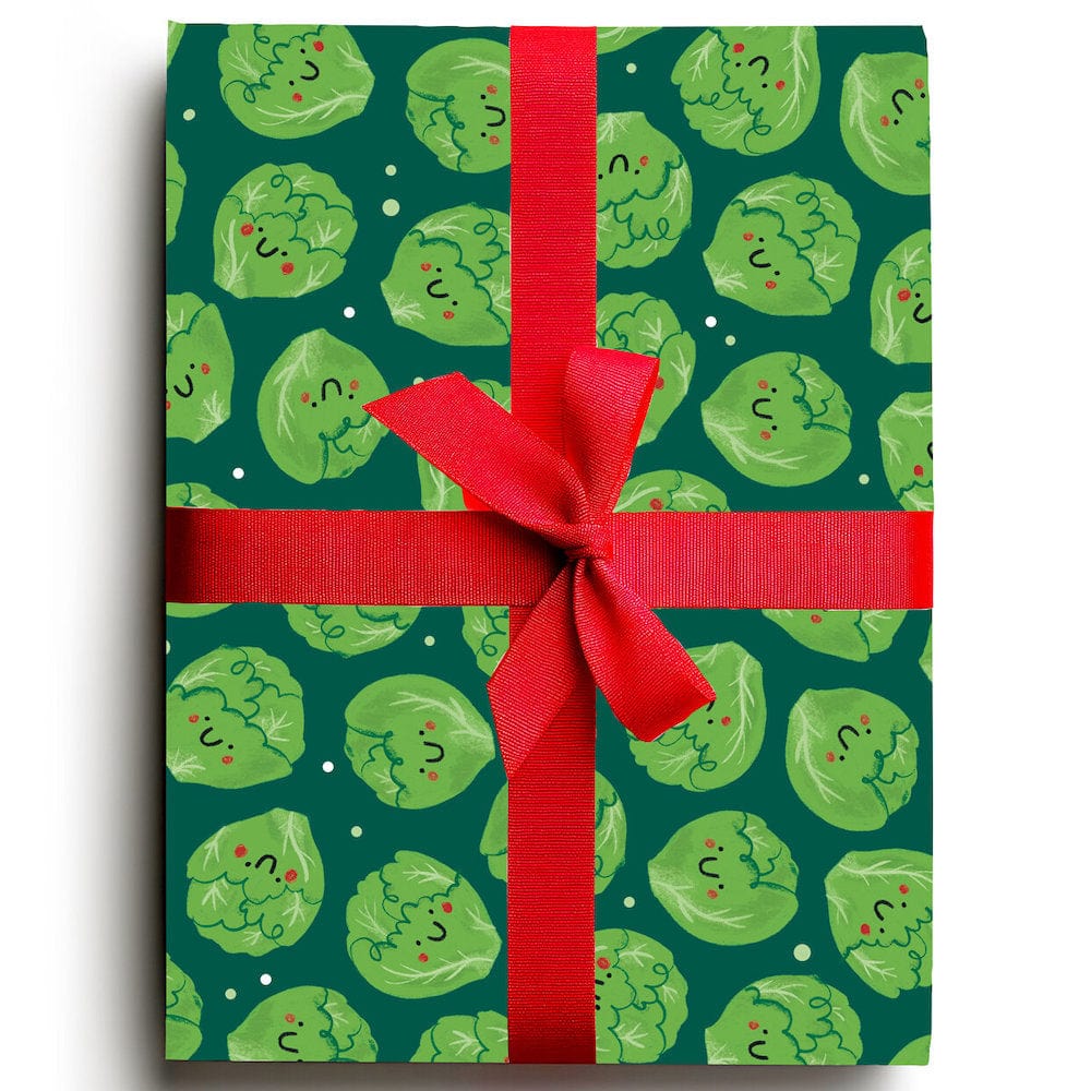 Raise a smile before your gift is opened with our Smiling Sprouts Gift Wrapping Paper! This stunning wrap is covered with joyful festive Brussel sprouts in luscious greens, making it the perfect finishing touch for any thoughtful present.