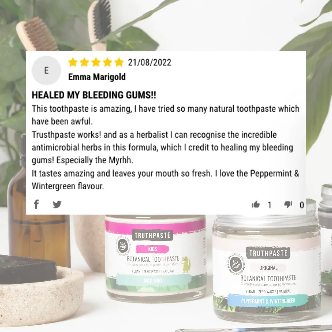 Truthpaste says no to confusing chemicals and contains only simple understandable ingredients. By combining ancient botanical wisdom with modern research they have created natural toothpastes that are big on benefits. Strong antibacterial & anti-inflammatory properties that supports healthy gums whilst the mineral base naturally whitens, removes plaque & prevents decay.